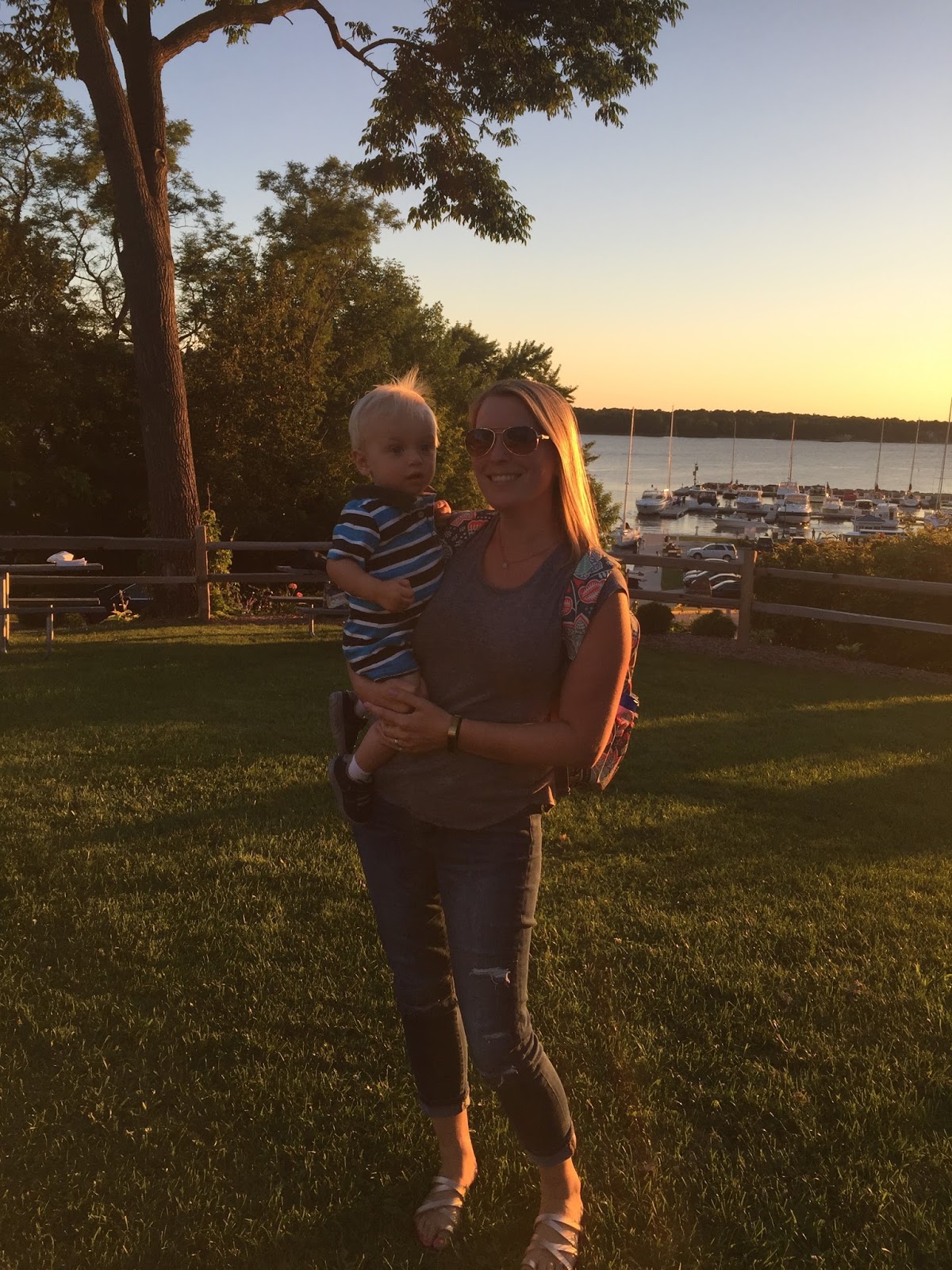 For the first week of June, Nana and Papa rented a house on the lake "Up North" in Hayward, WI, and invited everyone to come up. The cabin was so nice and the lake was beautiful. Everyone was able to get out on the water in Papa's new boat. The guys got to get a lot of fishing in, which they really enjoyed. Max man loves exploring new places, so he got busy once we got there. He finds the strangest places to focus on. There was a small entryway from the front door that had 2 steps going up into the kitchen. Max wanted to hang out there and go up and down the steps the whole time. We enjoyed the lake life, and went into town a couple times to eat and look around. Hayward is the home of the Lumberjack World Championships and every week they put on a show. We took Max to see them cut, climb, and run on the logs. It was a great trip, thanks so much Nana & Papa for having us.
